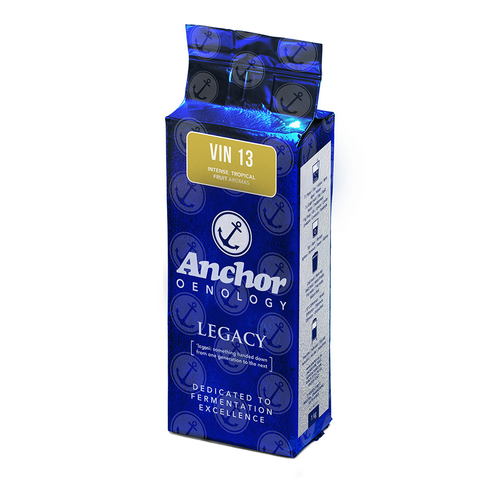 EFEKAT NA VINO: Kvasac Anchor VIN13 je rezultat projekta hibridizacije u Zavodu za mikrobiologiju i Instituta za vinarsku biotehnologiju Fakulteta u Stellenboschu, Južna Afrika. Oslobađa arome isparljivih tiola; egzotičnog voća (grejp, guava), a proizvodi estre na tropsko voće i cveće.